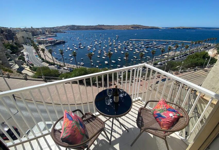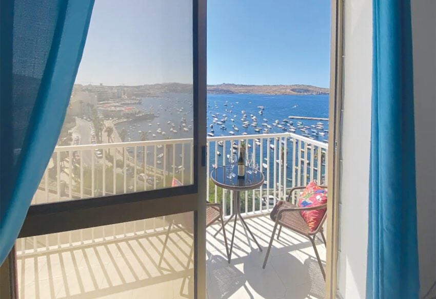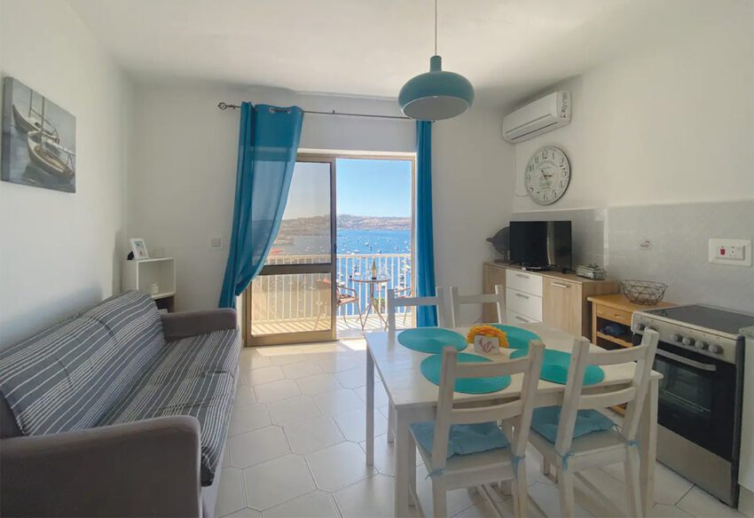 Apartament z dwiema sypialniami na pierwszym piętrze tradycyjnego maltańskiego budynku, z którego rozciąga się zapierający dech w piersiach widok na morze. Apartament posiada również kuchnię połączoną z salonem, prysznic i oddzielną toaletę.